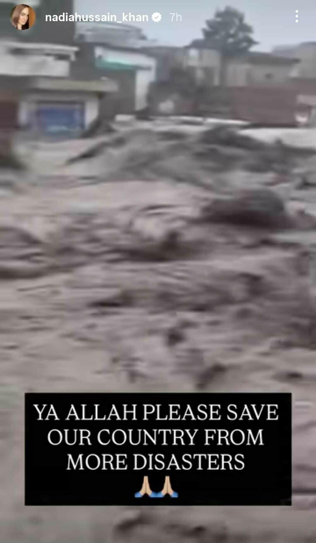Model and actor Nadia Hussain took to social media with a short but powerful prayer, “Ya Allah, please save our country from more disasters.”