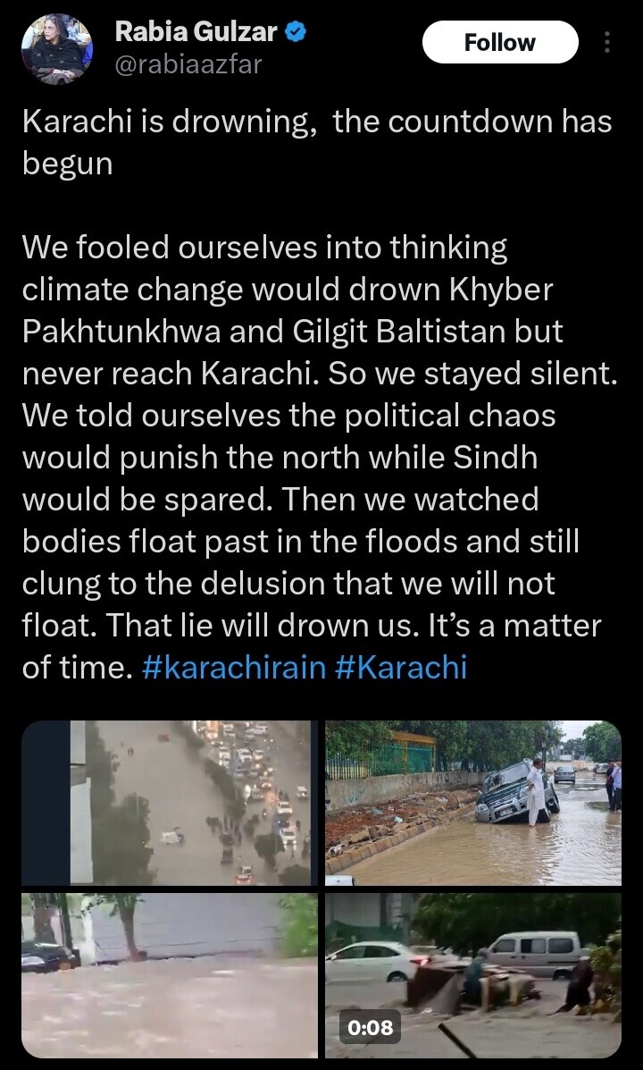 Another user talked about how climate change wasn’t just an issue for the mountainous regions of the north but a nationwide problem that just struck Karachi.