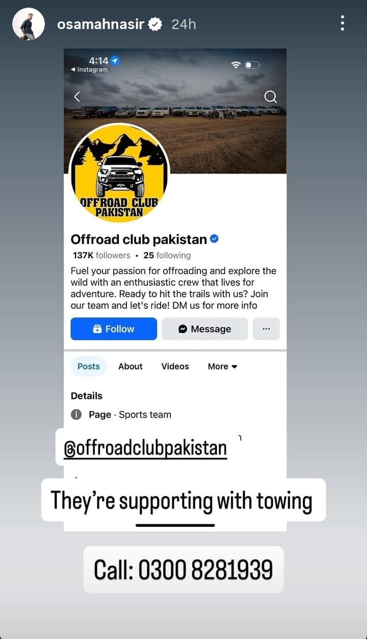Many clips of people pushing stranded vehicles through knee-deep water emerged as people’s cars broke down or ran out of fuel after being stuck on flooded roads for hours. The Offroad Club Pakistan, a group of car enthusiasts with specially equipped vehicles, offered to help tow people’s cars if they had broken down.