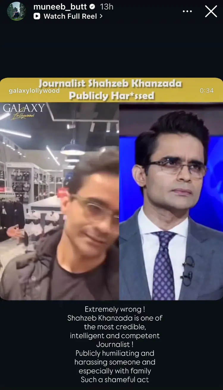 Actor Muneeb Butt and singer Jawad Ahmad have spoken up in support of anchorperson and writer Shahzeb Khanzada after videos emerged on social media of him being accosted in public by a man accusing him of acting against PTI founder Imran Khan and his wife Bushra Bibi.