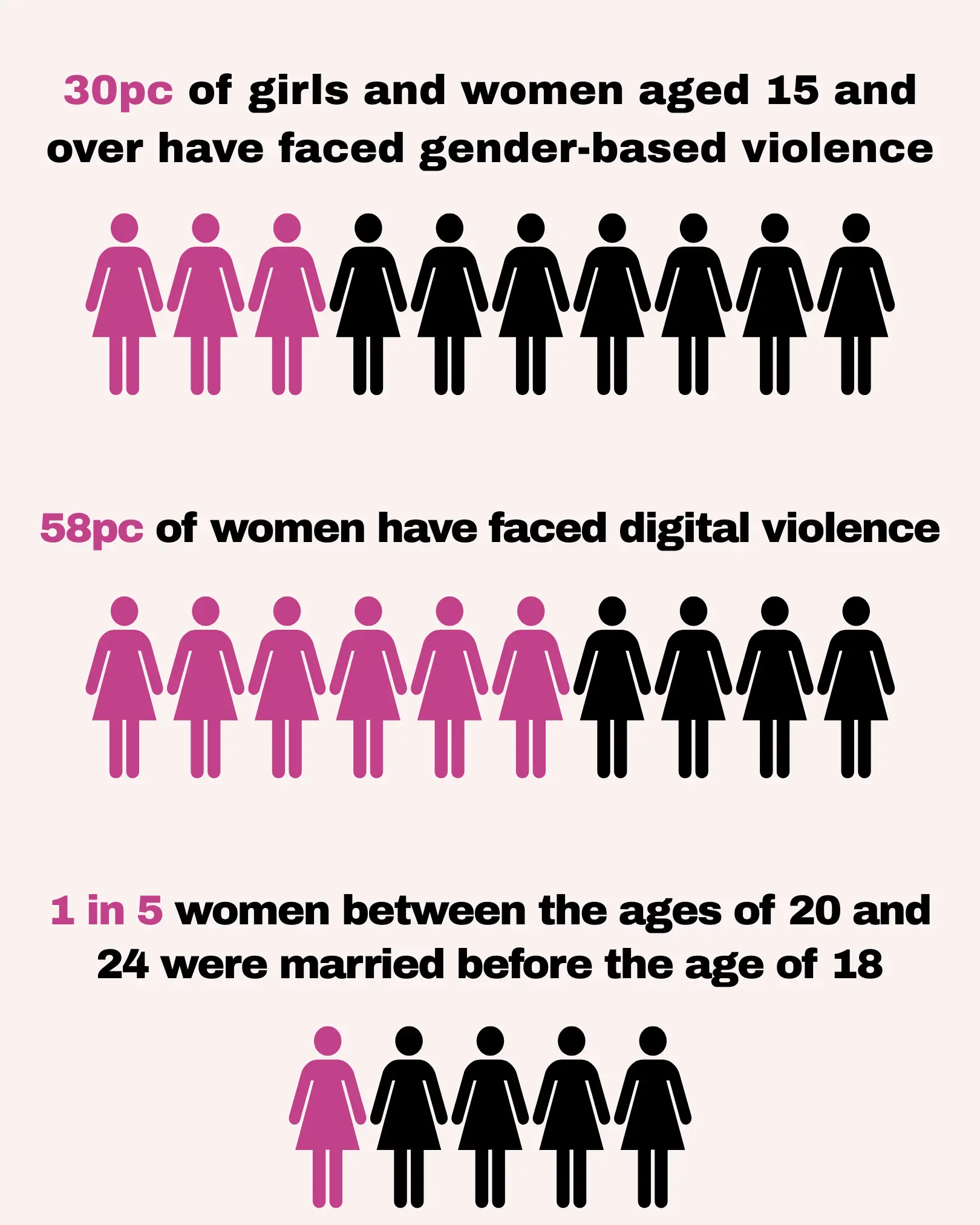 Female genital mutilation is also still a problem, with 230 million girls falling victim to it in 2024, a 15pc increase from eight years ago, according to UN Women.