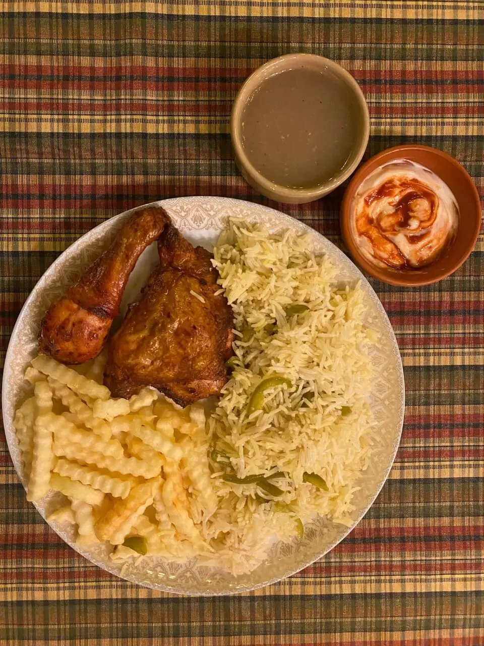 If the kebab is bravura, the Baked Chicken is restraint perfected. Brined in clove and tea, marinated in a roasted-pepper blend, then eased into the oven till tender, it’s a plate that makes Nando’s feel like a distant memory. The meat holds together but yields instantly, and the saffron rice served with it is fragrant without being perfumed to distraction. There’s craft here, but also tenderness.