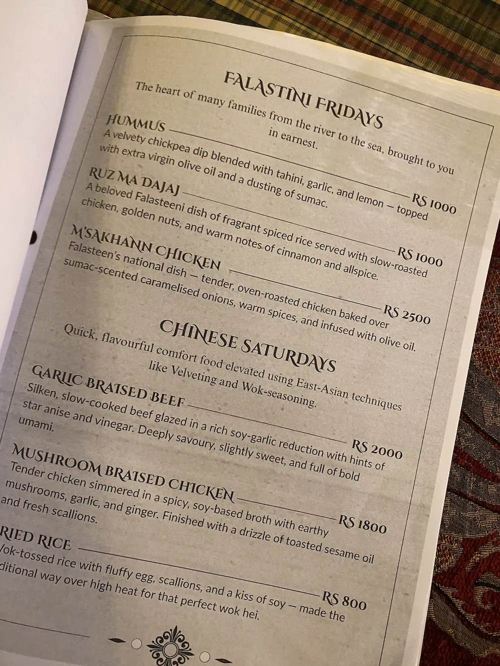 Café 1947 calls its repertoire pan‑eastern, but that label undersells the curation. The kitchen is helmed by Asiya, Aemal’s mother, who spent 15 years as a flight attendant and, more importantly, a lifetime as a dedicated cook and reader. The menu’s compass traces the old Silk Route with lived-in specificity: Afghani Mondays, Iranian Tuesdays, a Pakistani Wednesday heavy with memory, Mughlai Thursdays, Falasteeni Fridays, Chinese Saturdays, and a nostalgic Russian Sunday.