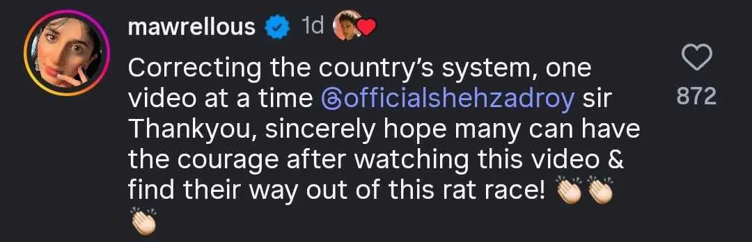 In the comments under the singer’s post, many celebrities praised Roy’s initiative. Mawra Hocane said he was “correcting the country’s system, one video at a time”. She hoped people could gather the courage to “find their way out of this rat race” after watching the video.
