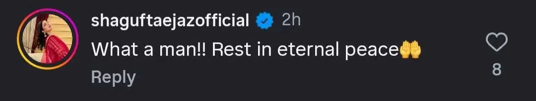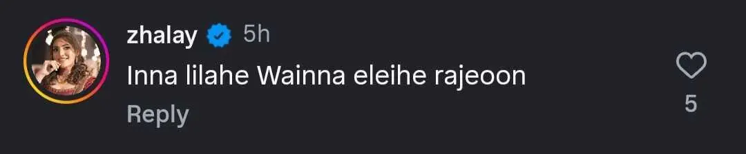 Members of the entertainment fraternity offered their condolences on Khalid’s passing, with actors Zhalay Sarhadi, Omair Rana and Shagufta Ejaz sending prayers in the comments under Instagram posts announcing the death.