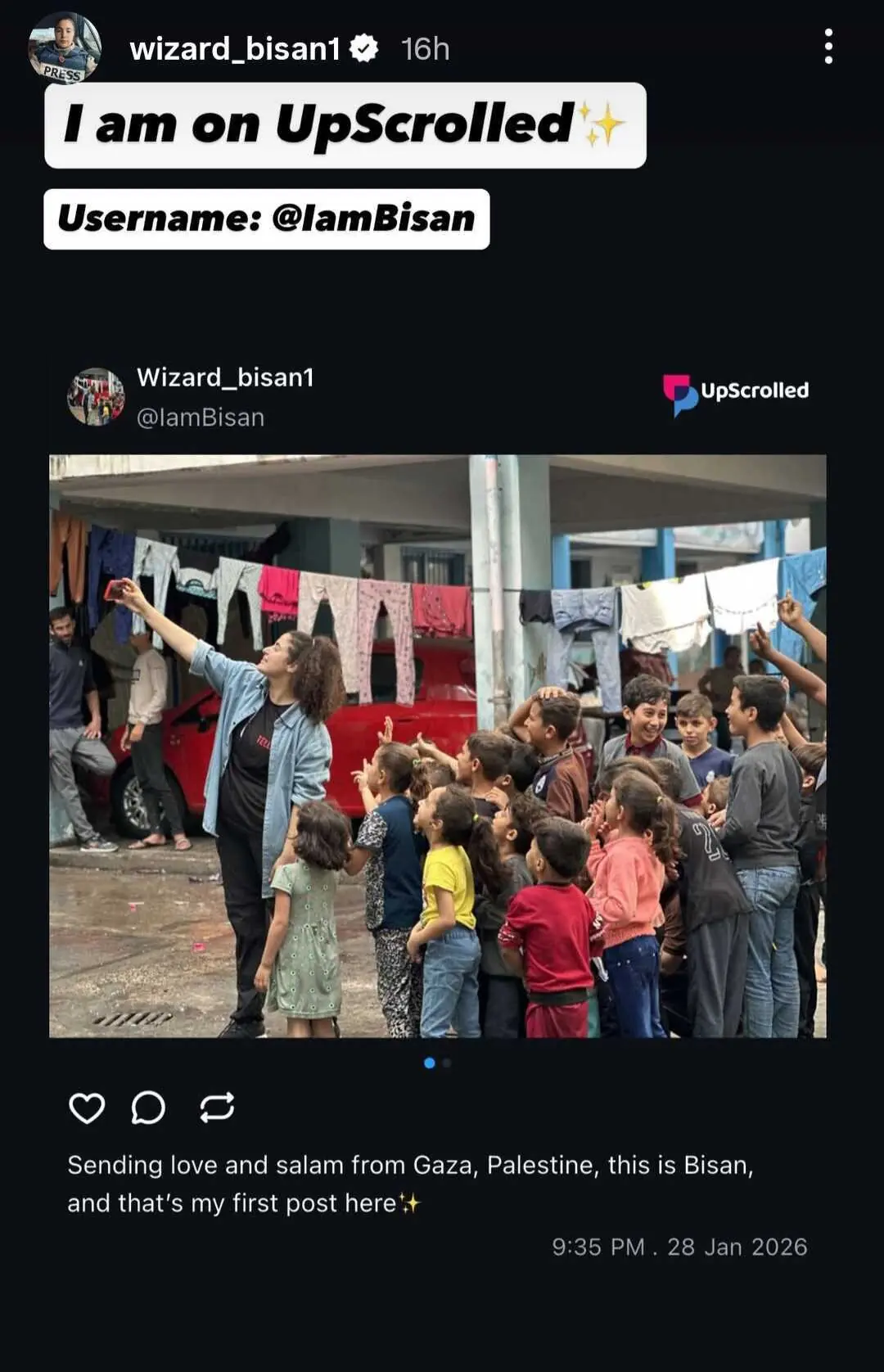On Thursday, Owda also announced she had joined the Palestinian-owned social media app UpScrolled, which is gaining increasing popularity as a censorship-free alternative to major platforms like TikTok.