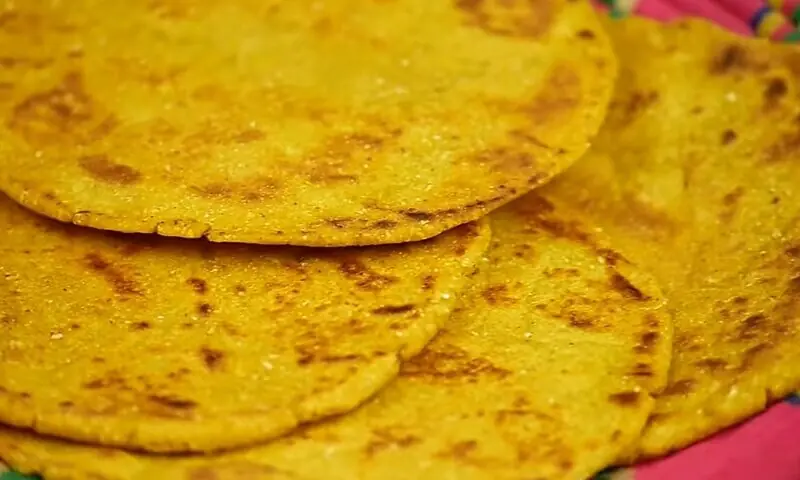 For makai ki roti, you need maize flour, which is typically yellowish in colour. Add some cooking oil or ghee to the flour before adding water to knead into a soft dough. Then divide into equal-sized balls, before gently flattening and spreading them thin while your fingers are greased with cooking oil or ghee. Place on a hot griddle and cook on both sides.