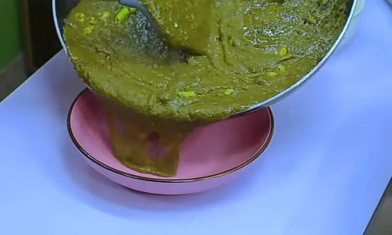 The spinach leaves have enough natural moisture, so there is no need to add more water to the pan while boiling them. When the moisture has evaporated, transfer the boiled leaves, which must have reduced in size, to a bowl if you don’t want to grind them.