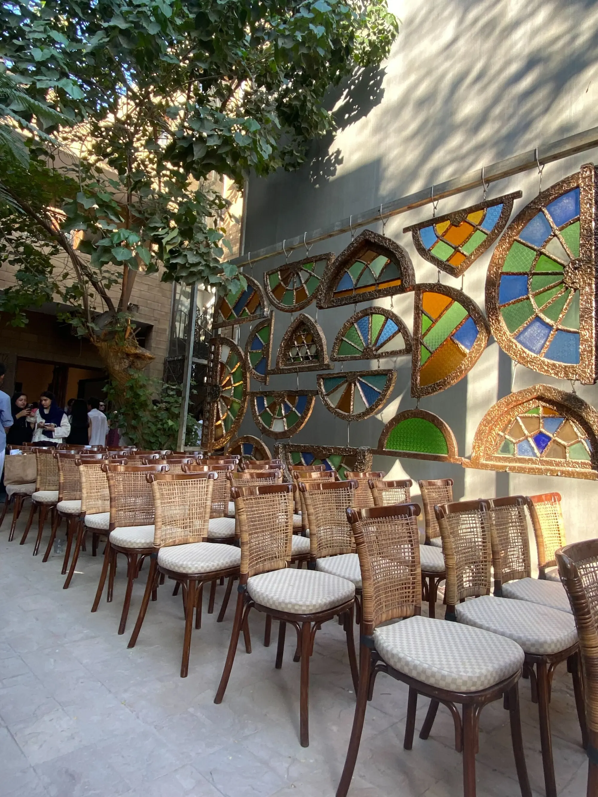 I took my seat along the aisle of the third row, chairs aligned neatly in rows of four on either side of the Gulgee Museum’s central seating area. On one side, stained glass and towering metal installations stood, quietly demanding attention as guests settled in for the Karachi Biennale 2027 curtain-raiser — a celebration marking 10 years of the Karachi Biennale and offering a first glimpse of what lies ahead.