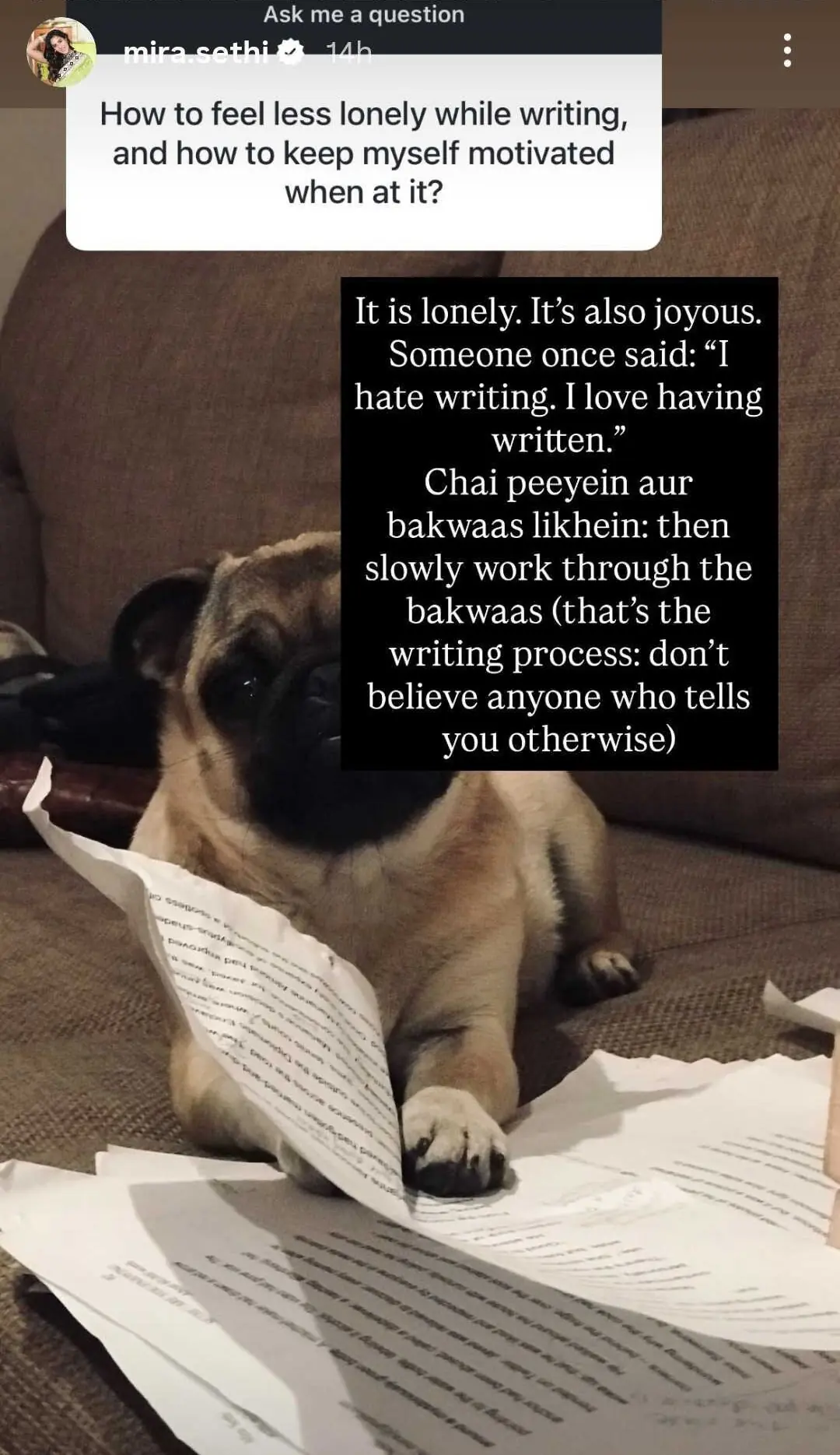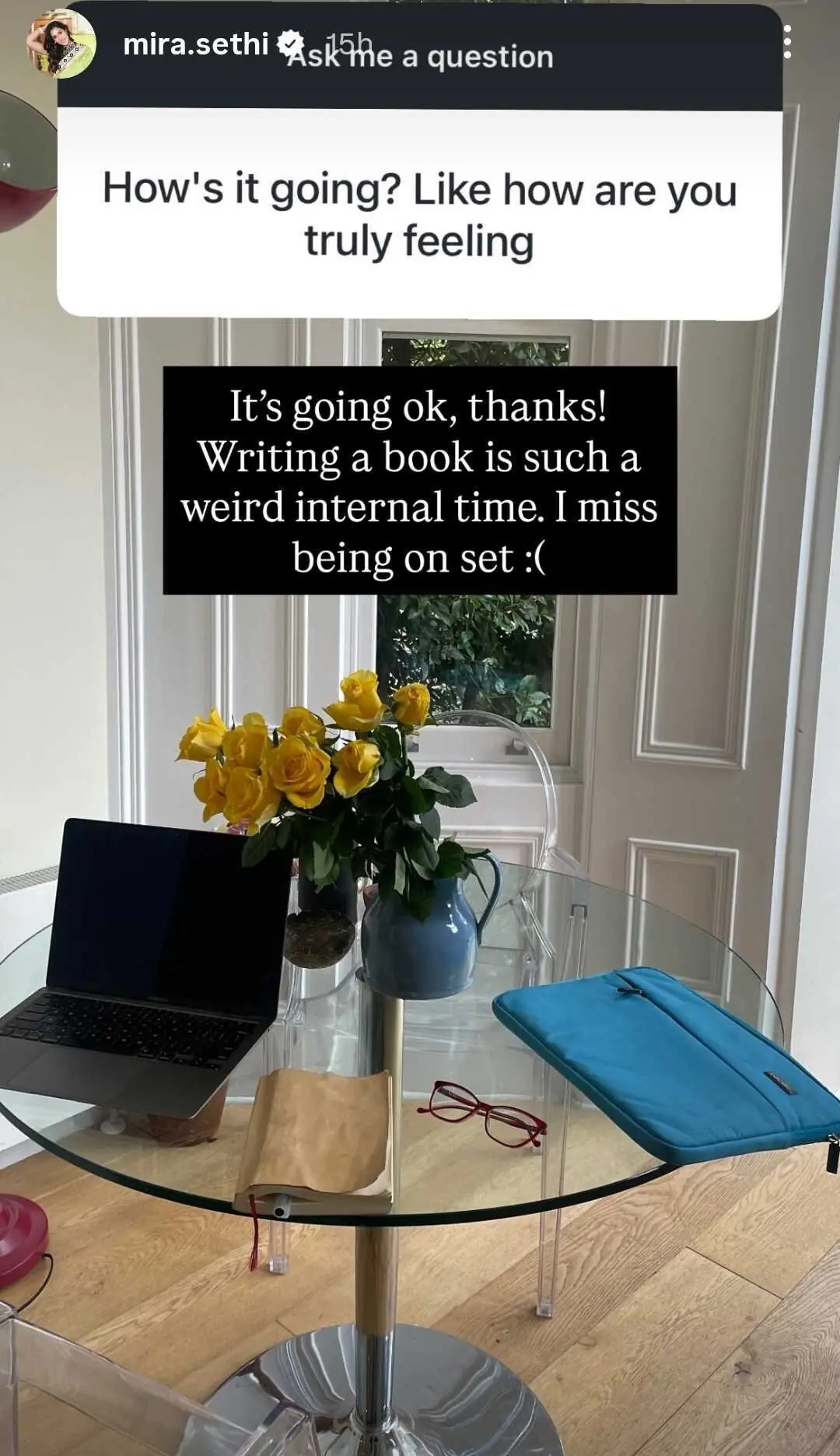 Starting off with the basics, one user asked Sethi how things were going. She said they were okay, but that she missed acting. Writing a book, she said, was a “weird internal time”.