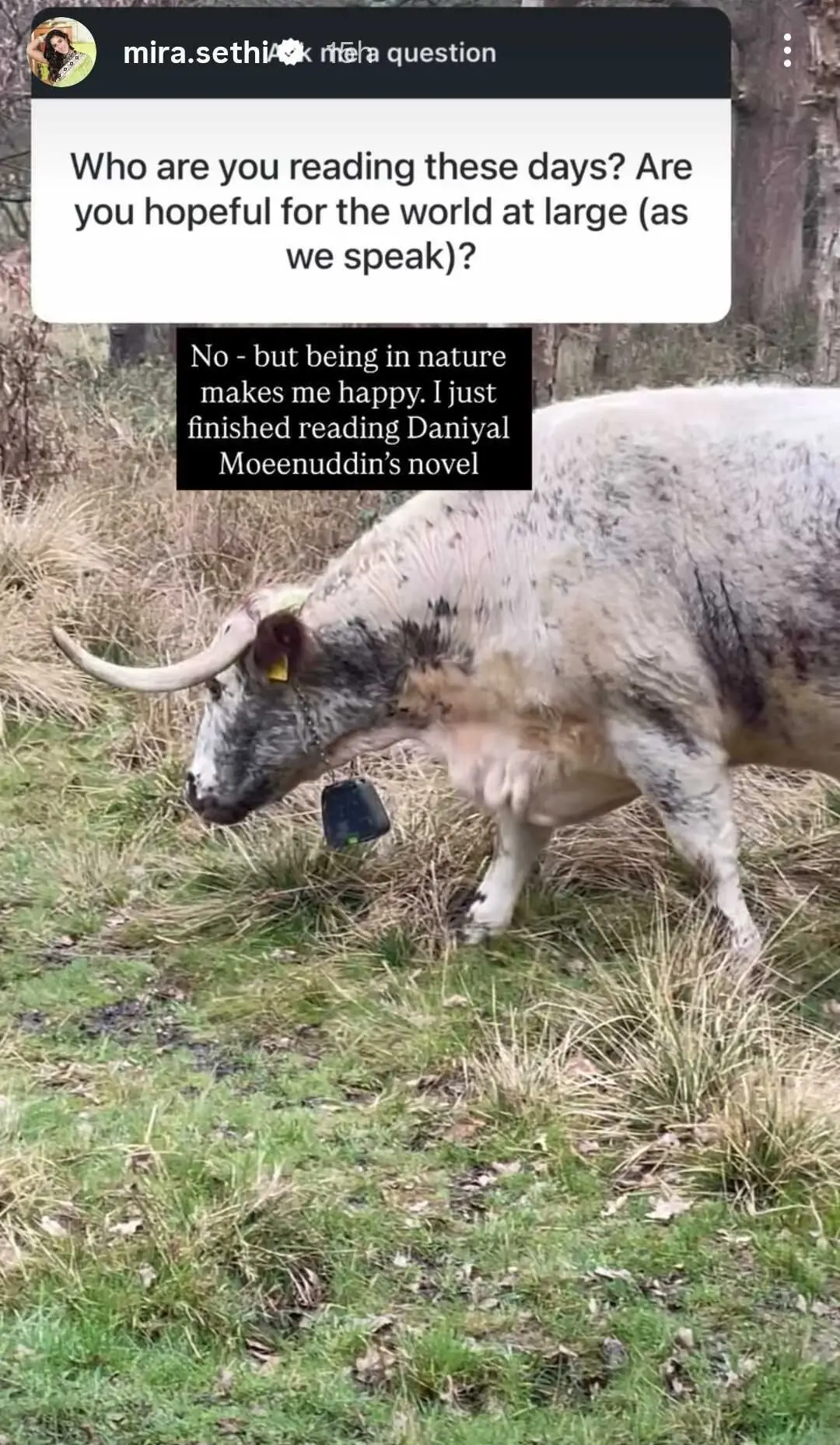 When asked whether she’s hopeful about the world today, the Kuch Ankahi star said she wasn’t, but that being in nature helped her deal with the doom and gloom. She also revealed she was last reading a book by Daniyal Mueenuddin.