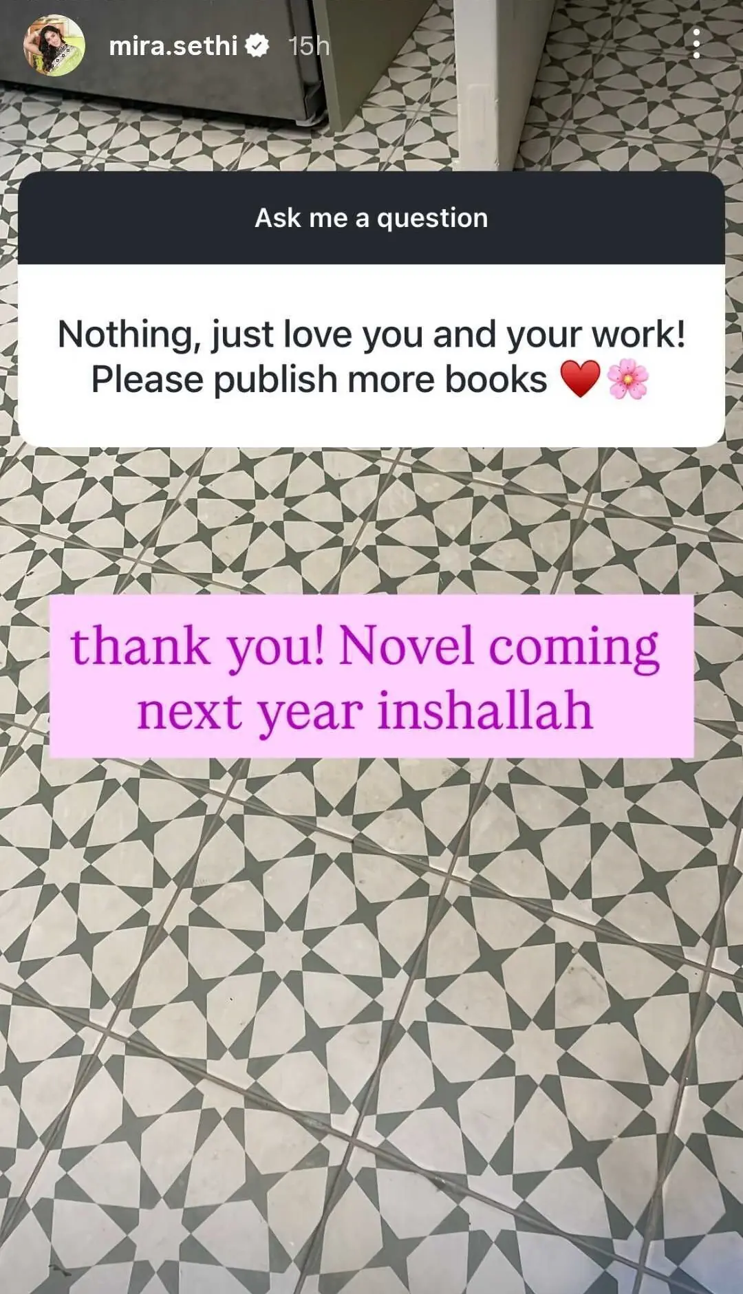 A couple of others asked what projects she had going on right now, to which the author said she was working on new novel set to release next year. She also said she was working on the drama Doctor Bahu, posting a picture with co-star Adeel Husain.